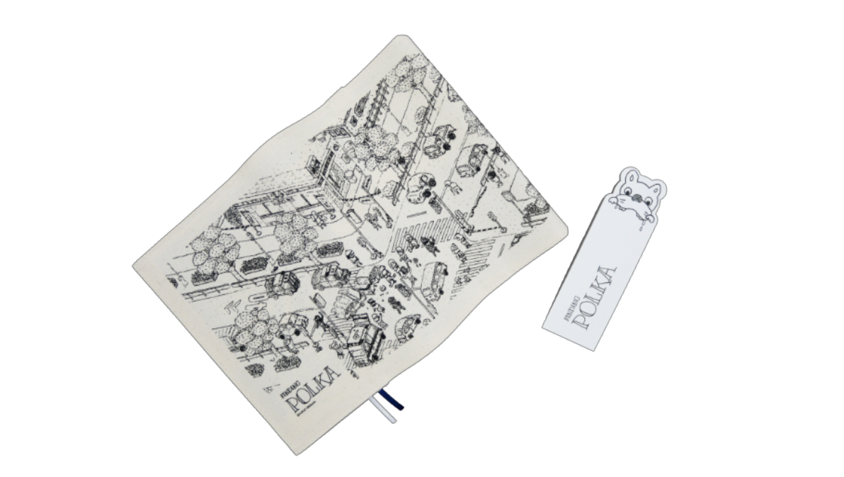 来場いただいた方には「ポルカ」という紙を使用したしおりを、 ウィッシュリスト登録画面をご提示いただいた方にはブックカバーと紙袋をプレゼントいたします。